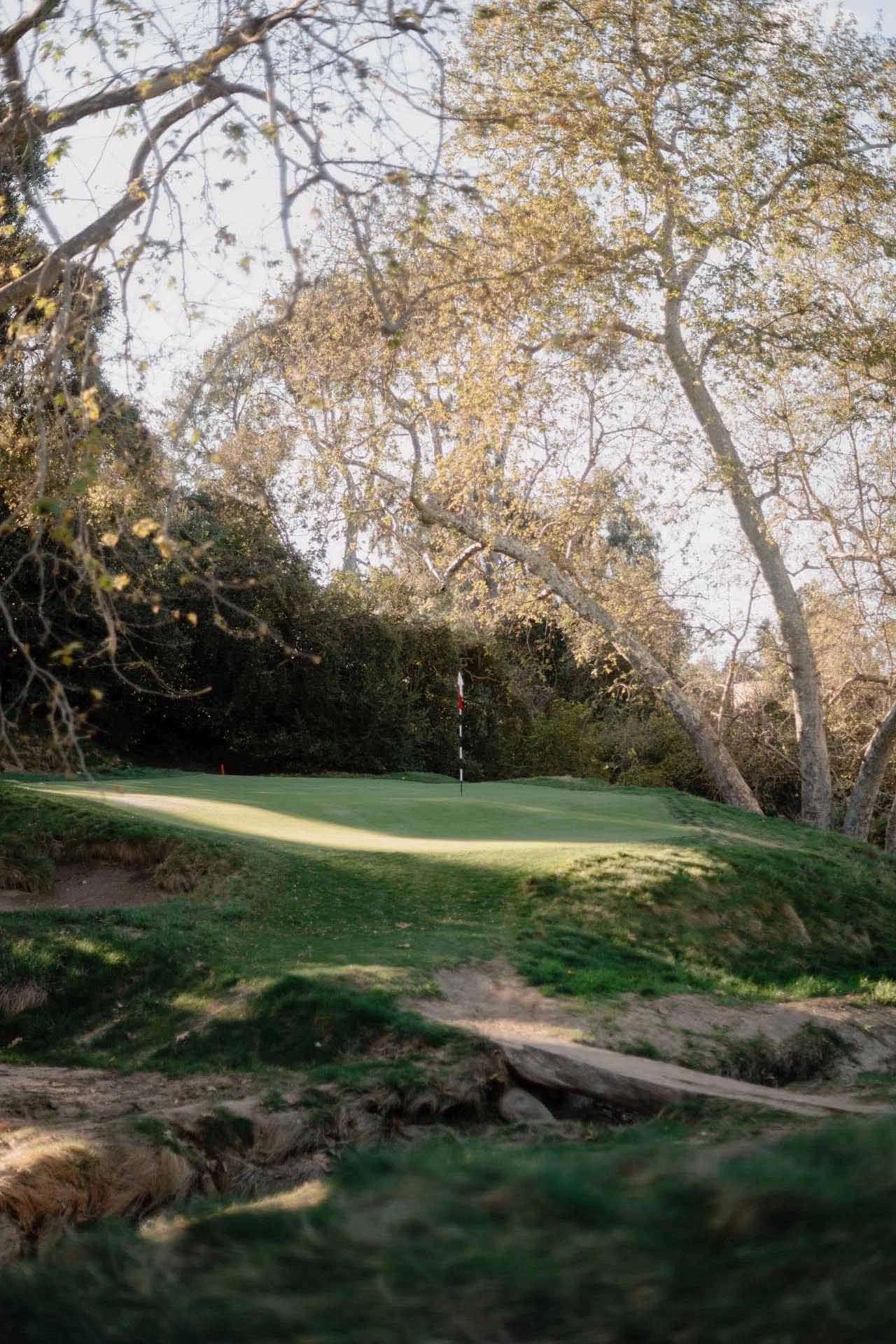 In July 2024, I learned the hard way just how right Hanse is. The regulation No. 17 at LACC North is no small matter—it’s an unrelenting par 4, where the hill and barranca run up the right side of the entire hole and an armada of bunkers guards the front of the green. By some miracle, I found the surface in regulation and had taken a deep, relieved breath when my member playing partner turned me to the right: “Check that out.”