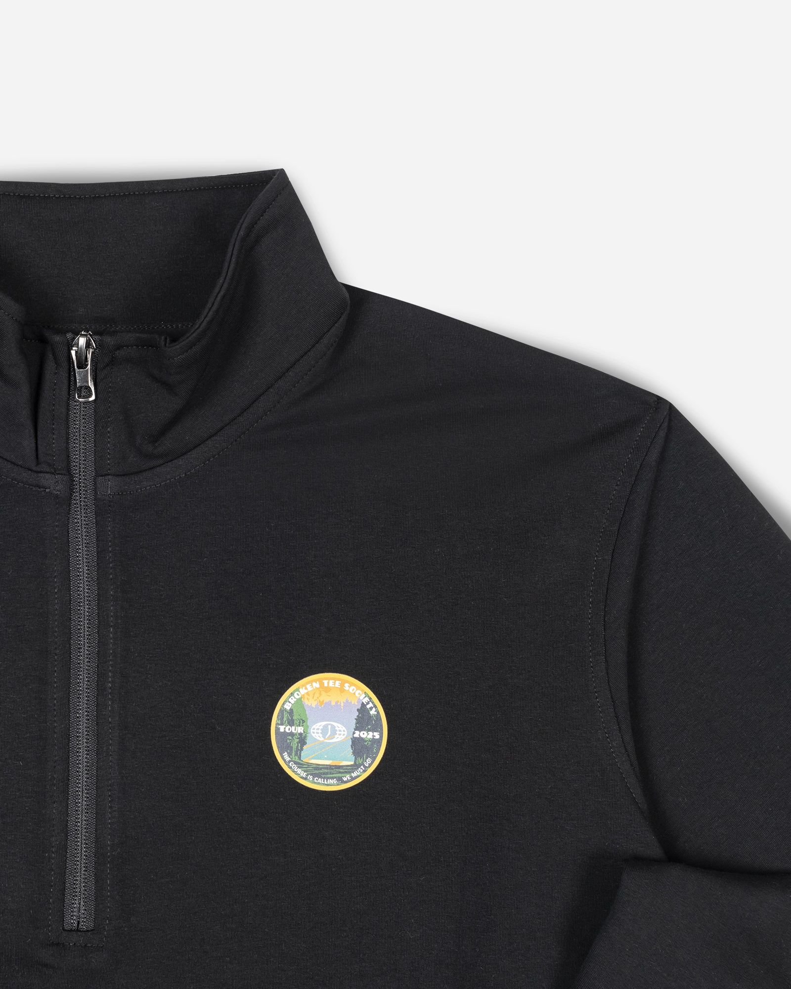 Built for the road and the walk. This custom piece was made for members chasing tee times across time zones—lightweight enough to move with you, warm enough for the early start. Featuring the 2025 Broken Tee Society Tour artwork at the chest, it’s a subtle signal for those who know. Spot it on the range, in the terminal or across a green somewhere far from home.